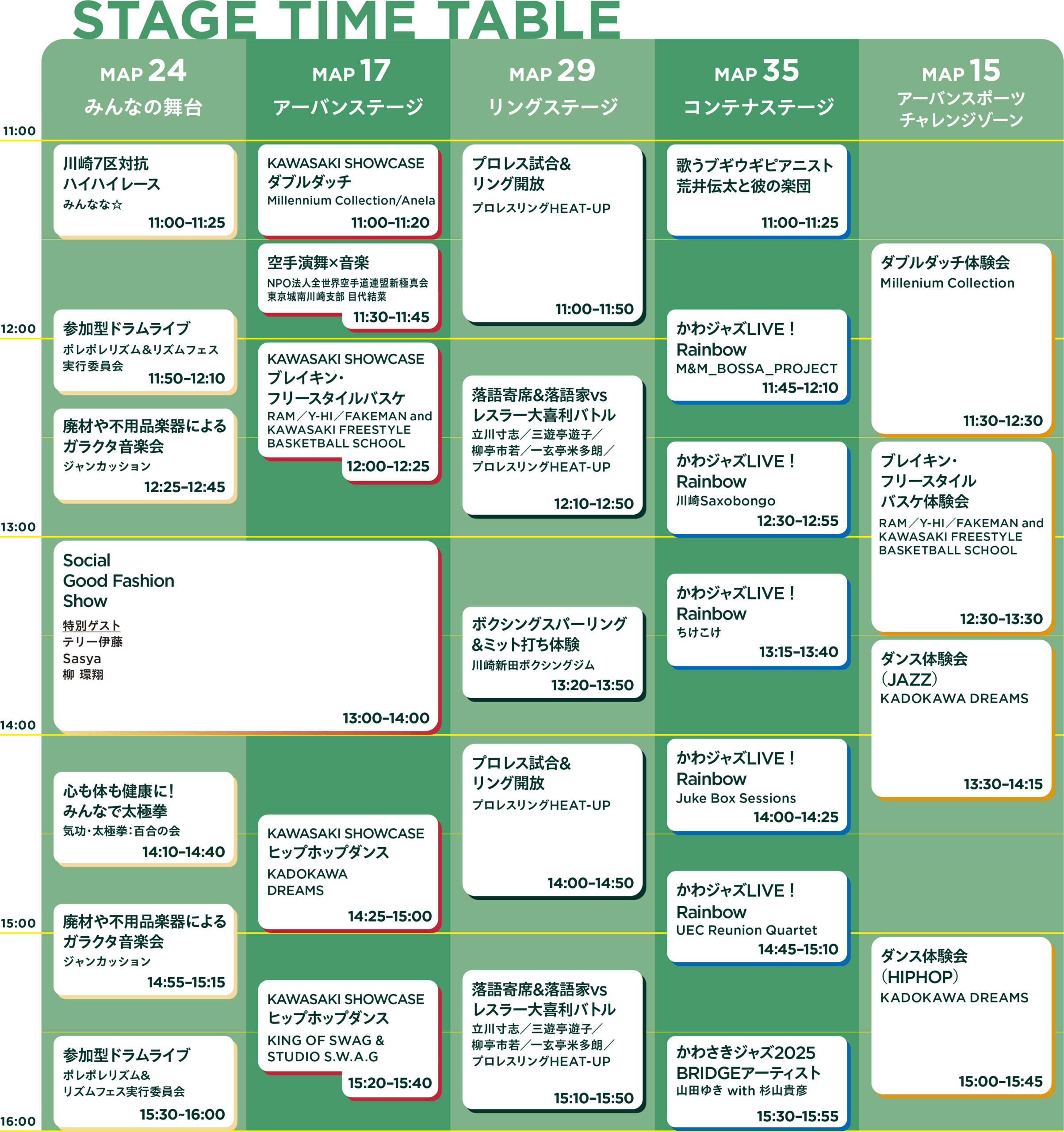 今年は、未来を考えるトークイベントと展開する「カンファレンス」や誰もが楽しめる「フェスティバル」を開催する「Colors,Future!Summit 2025」、市役所通りを一時的に歩行者空間とするイベント「みんなの川崎祭」、市民参加型の伝統ある「かわさき市民祭り」、地元の名店が集まる屋台市場である「川崎夜市」、初開催の音楽ライブイベント「LIVE STOCK - KAWASAKI MUSIC JOURNEY - 」の5つのイベントを、11月上旬に同時 開催します。