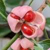 - 中はタネこそ入っているものの空洞になっていて、つぶすとパンと割れます。タネは球形で白いハート形の模様があり必ず3粒入っています。