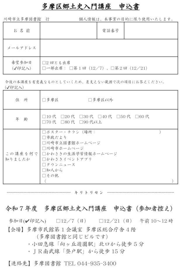 令和7年度 多摩区郷土史入門講座 紹介写真1
