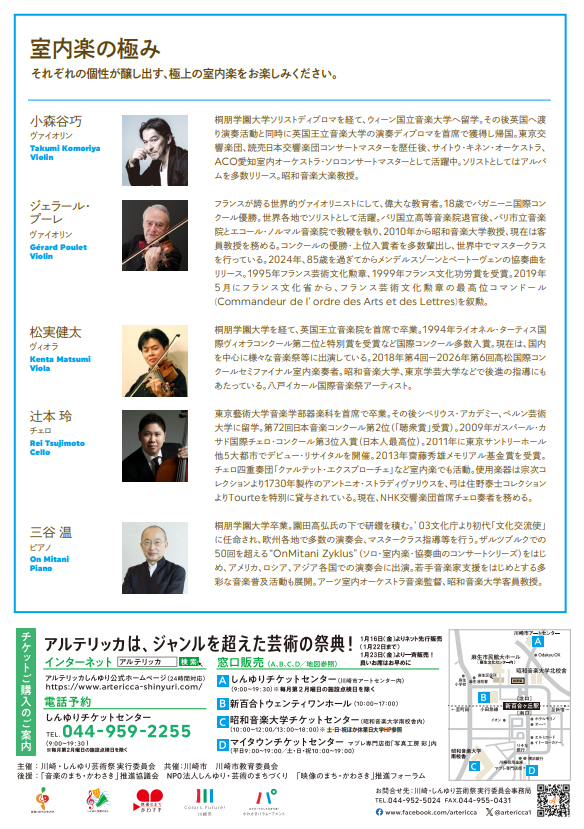 小森谷巧(ヴァイオリン)、ジェラール・プーレ(ヴァイオリン)、松実健太(ヴィオラ)、辻本玲(チェロ)、三谷温(ピアノ) 紹介写真2